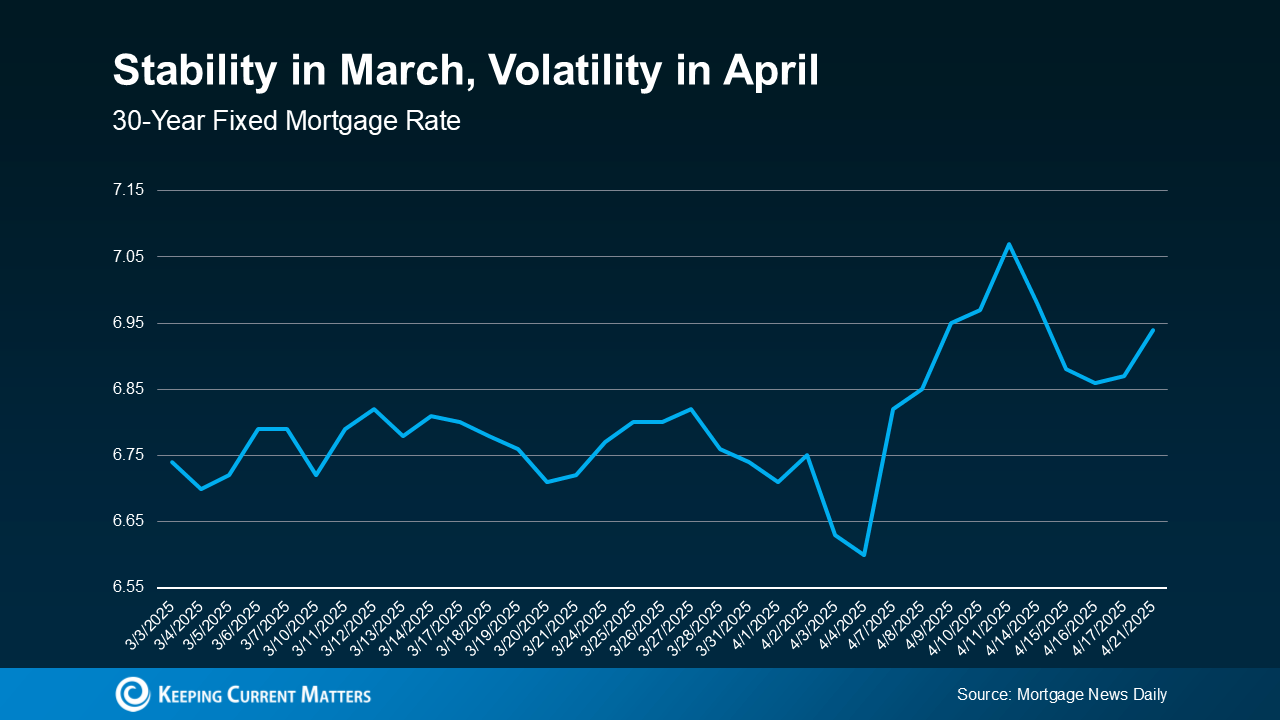 Take a look at the graph below. It uses data from Mortgage News Daily to show that after a relatively stable month of March, mortgage rates have been on a bit of a roller coaster ride in April: